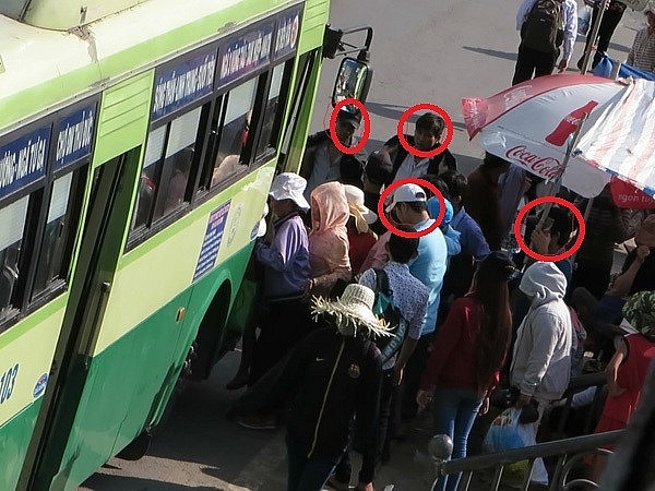 Nhóm trộm cắp dàn cảnh để móc túi khách đi xe buýt (ảnh Báo Thanh niên)