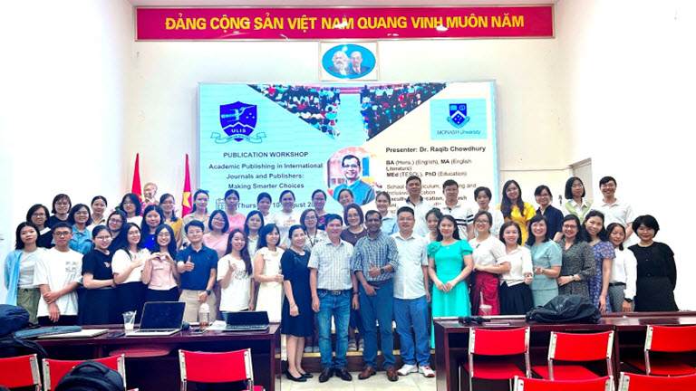 Ngày 10/8/2023, tại Hội trường Vũ Đình Liên đã diễn ra hội thảo “Công bố học thuật trên các tạp chí và nhà xuất bản quốc tế: Những lựa chọn thông minh” (Academic Publishing in International Journals and Publishers: Making Smarter Choices) dành cho học viên cao học, nghiên cứu sinh, giảng viên Trường Đại học Ngoại ngữ.