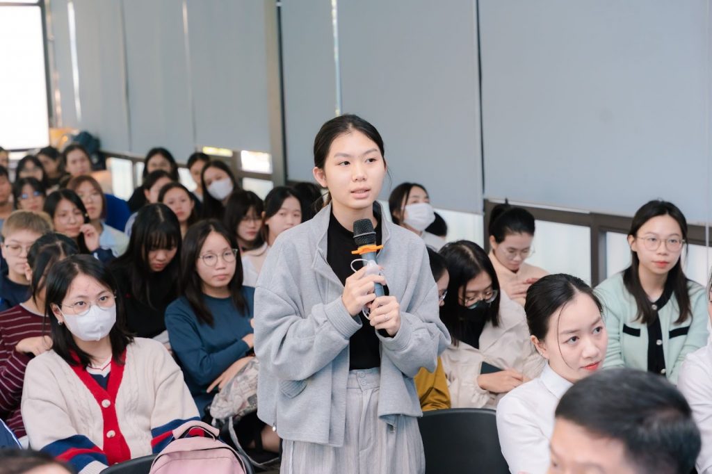 Sinh viên rất hào hứng trong phần Q&A, với hàng loạt câu hỏi thẳng thắn từ sinh viên như; Yêu cầu ngoại ngữ, ca làm việc và chính sách đãi ngộ, lộ trình phát triển nghề nghiệp, cơ hội trở thành nhân sự chính thức sau kỳ thực tập.
