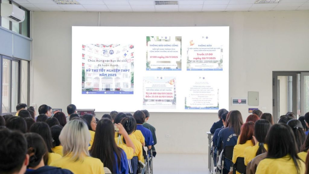 Tham dự buổi tổng kết có PGS.TS. Hà Lê Kim Anh – Phó Hiệu trưởng, đại diện lãnh đạo các phòng ban chức năng, Ban Truyền thông Tuyển sinh ĐHCQ 2025, Đại sứ Tuyển sinh 2025 và Đại sứ Đặc nhiệm 2026.