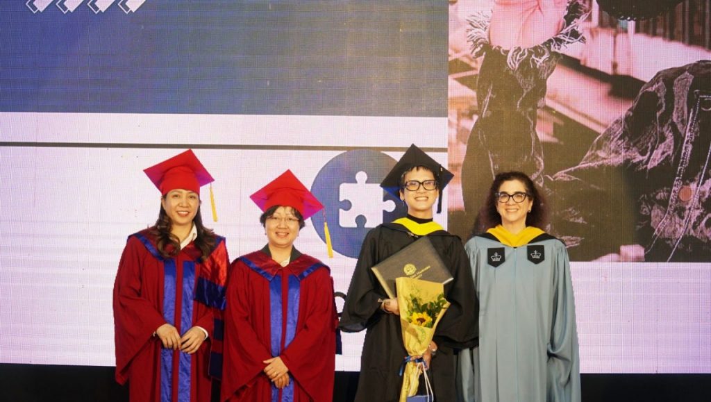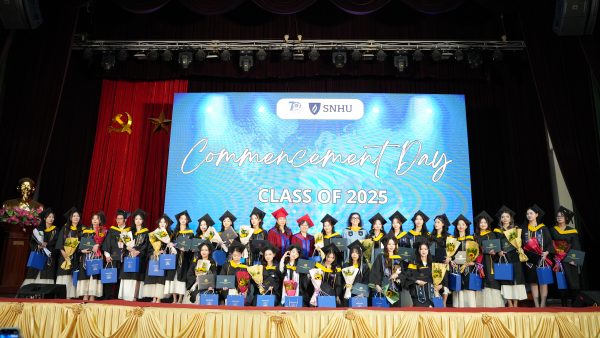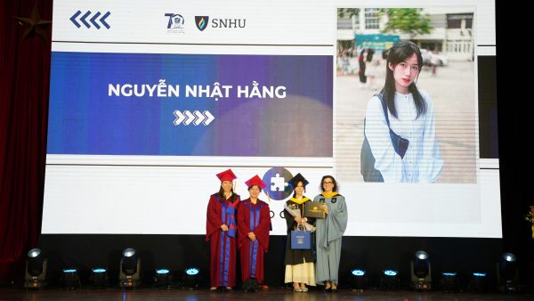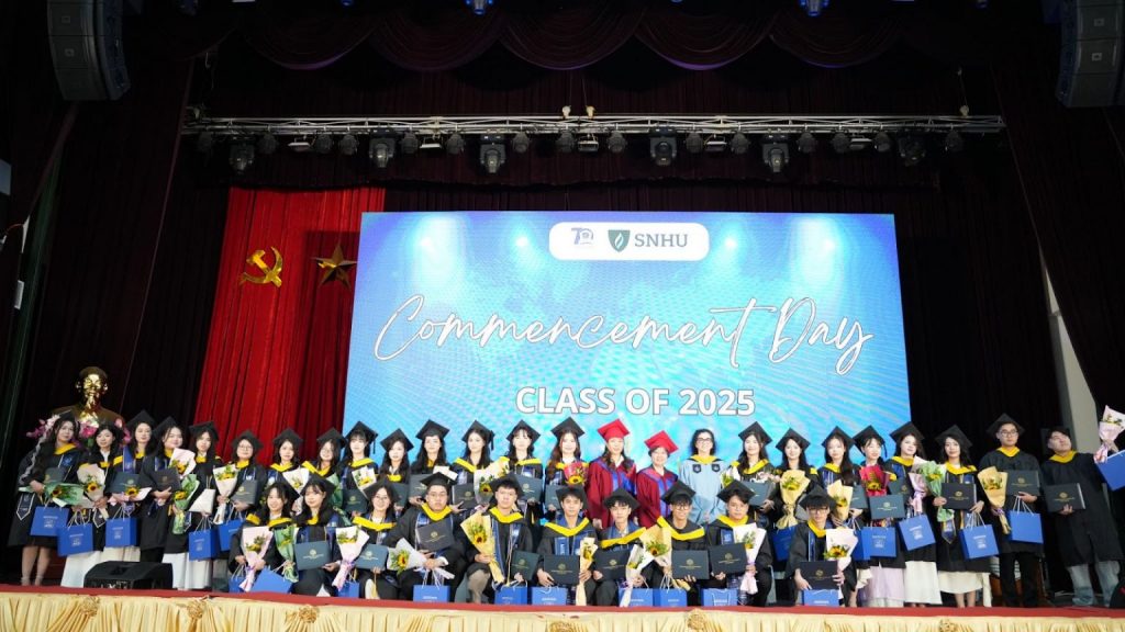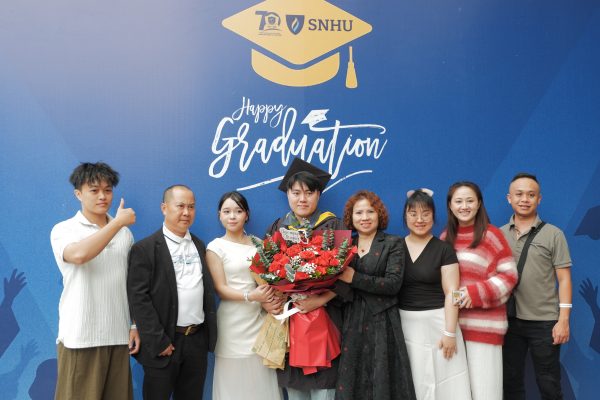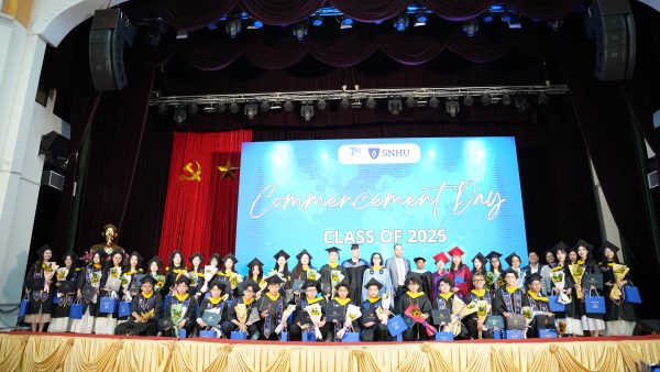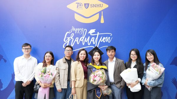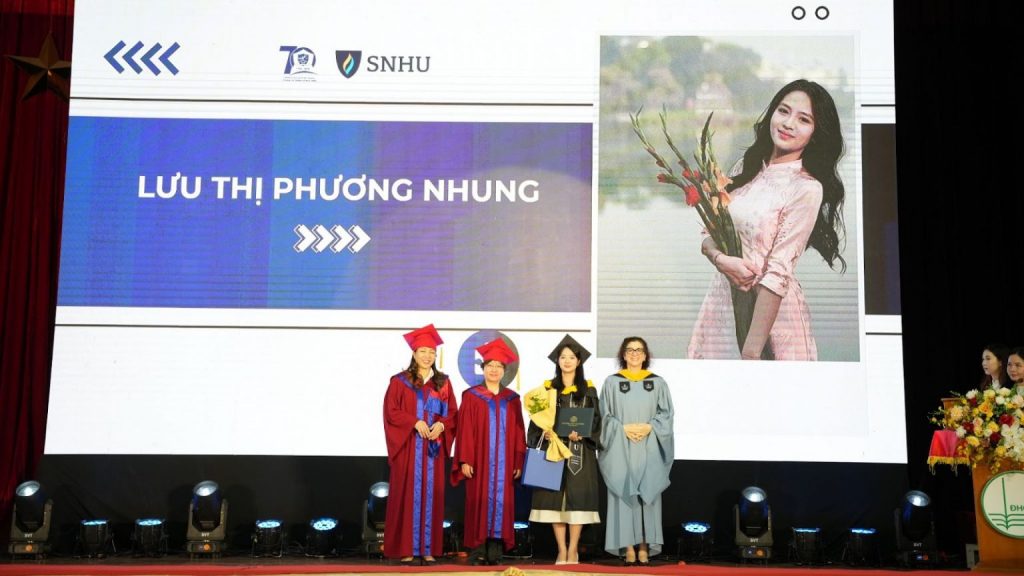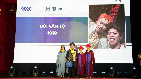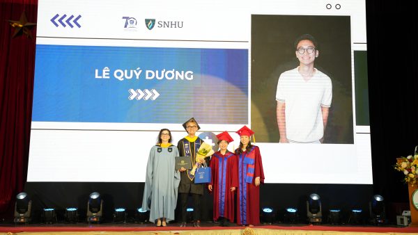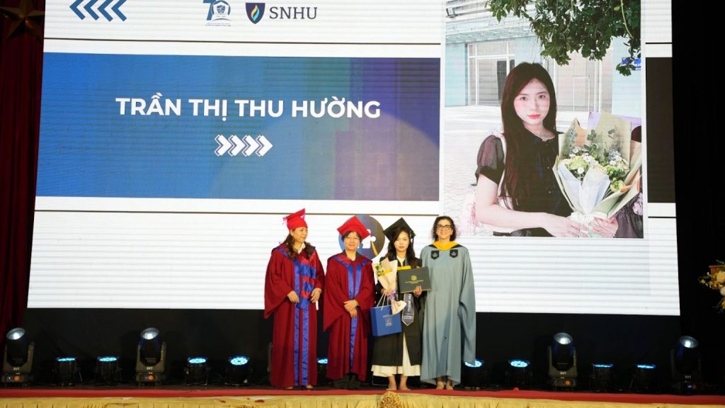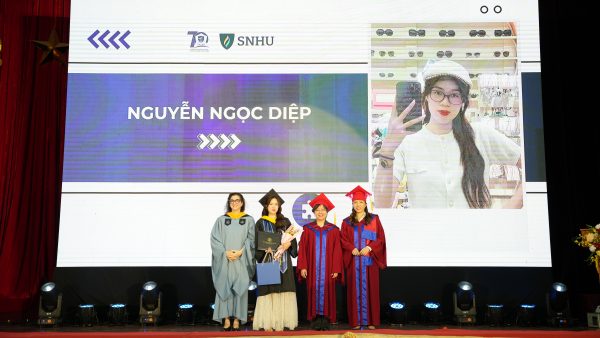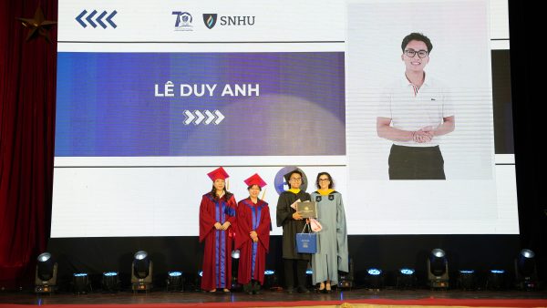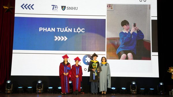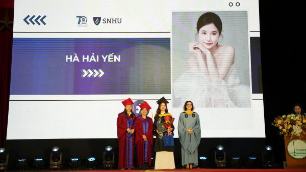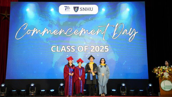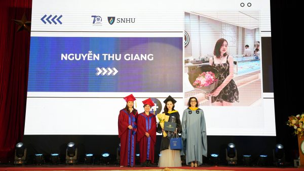Cũng tại buổi lễ, đại diện Trường Đại học Southern New Hampshire, bà Rachael Sears xúc động gửi lời chúc mừng và lời nhắn nhủ tới các tân cử nhân: “Luôn giữ tinh thần ham học hỏi, lãnh đạo bằng sự chính trực và lòng nhân ái, và dũng cảm tạo dựng con đường của riêng mình”. Bà cũng khẳng định các tân cử nhân là minh chứng cho sức mạnh của giáo dục toàn cầu và thể hiện sự mong chờ được thấy những điều tuyệt vời các bạn đem tới.