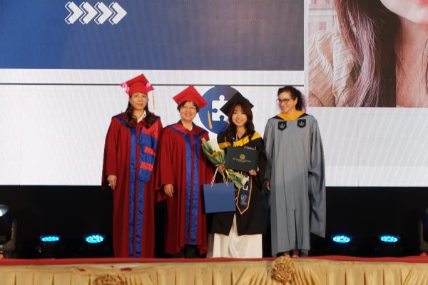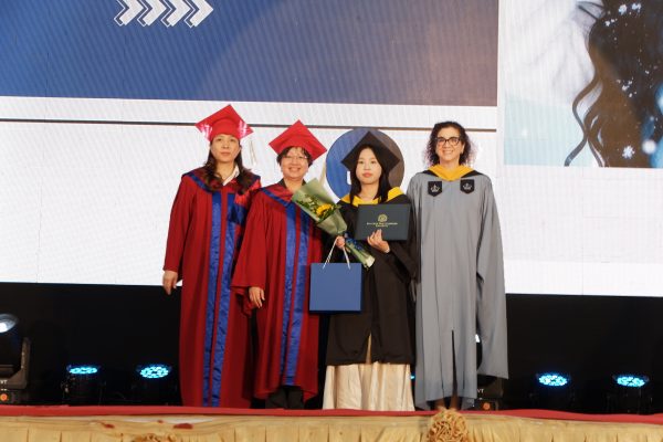 Tại buổi lễ, TS. Trần Thị Thu Hiền – Trưởng khoa Giáo dục Quốc tế đã đọc quyết định công nhận tốt nghiệp và trao bằng tốt nghiệp cho 146 tân cử nhân đã hoàn thành khóa học.