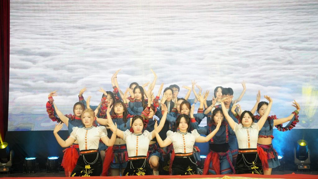 Mở đầu buổi lễ, tiết mục văn nghệ vô cùng thú vị đã khuấy động bầu không khí và nhận được những tràng pháo tay nồng nhiệt từ thầy cô và các bạn sinh viên.