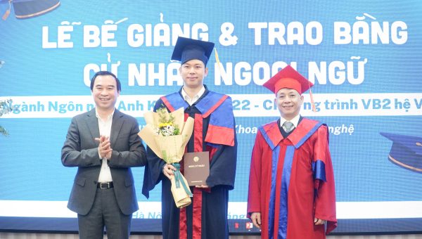 Tại lễ bế giảng, Phó Hiệu trưởng Lâm Quang Đông đã đại diện Nhà trường trao bằng và khen thưởng cho các tân cử nhân.
