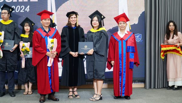 Tại lễ tốt nghiệp, đại diện Trường Đại học Ngoại ngữ và Trường Đại học Southern New Hampshire đã trao bằng tốt nghiệp cho 45 học viên lớp thạc sĩ liên kết quốc tế khóa 40 và 41.