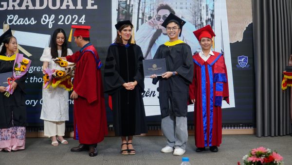Đại diện cho 22 học viên lớp liên kết quốc tế khóa 40, học viên Đỗ Nguyên Anh cũng gửi lời cảm ơn chân thành tới các bậc phụ huynh, các giảng viên đã hỗ trợ các học viên trong suốt quá trình học tập. “Em xin cảm ơn sự hỗ trợ của gia đình và sự tận tâm của các thầy cô trong suốt khóa học. Sự đóng góp này đã làm nên thành công của tất cả chúng em. Trong suốt khóa học, tuy có những lúc phải đối mặt với nhiều thách thức và áp lực nhưng chính những điều đó đã trau dồi bản lĩnh cho chúng em. Những kiến thức đã nghiên cứu trong khóa học không chỉ giúp chúng em phát triển các kỹ năng mà còn chứa đựng những giá trị nhằm phát triển sự nghiệp trong tương lai. Khóa học khép lại đồng nghĩa một chương mới sẽ mở ra với chúng em, là cơ hội để chúng em mong chờ những điều tốt đẹp phía trước.”, học viên Đỗ Nguyên Anh bày tỏ.