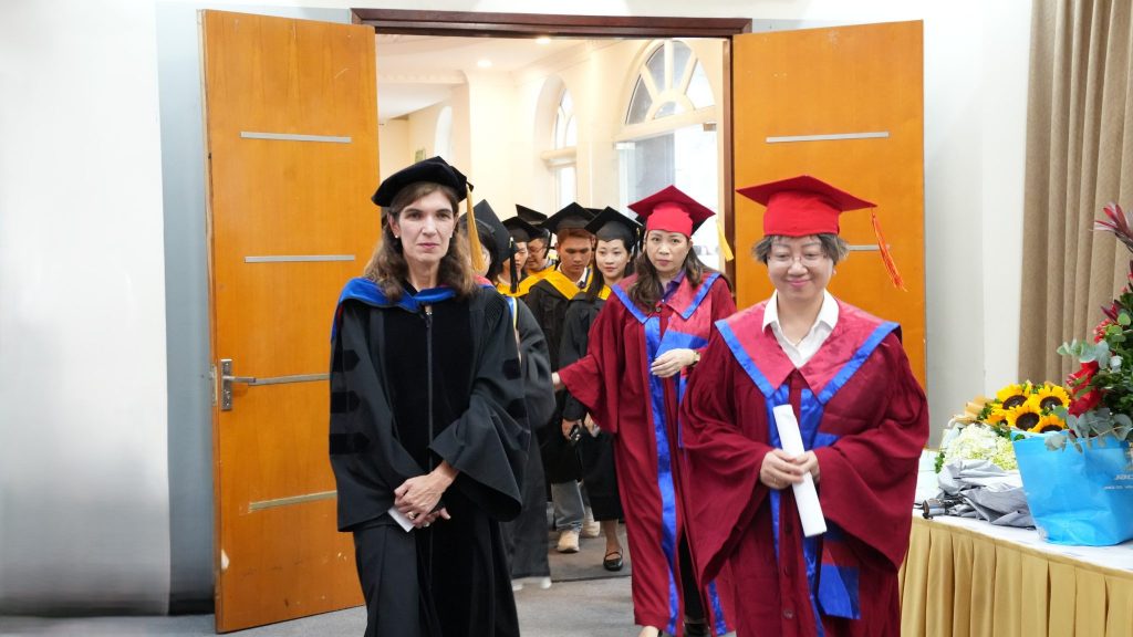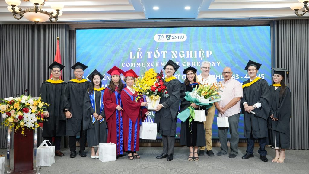 Trong niềm xúc động, học viên của cả ba khóa đã gửi tặng những bó hoa và món quà tri ân đến thầy cô và nhà trường. Đại diện hai trường đã trao bằng và quà tặng cho các tân thạc sĩ, ghi nhận và vinh danh những nỗ lực đáng tự hào.