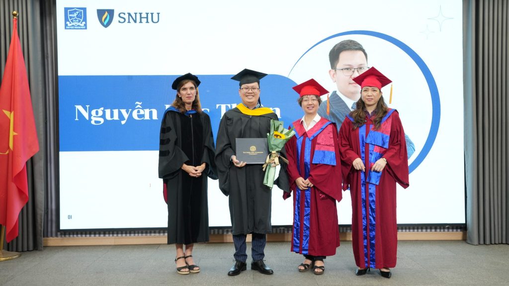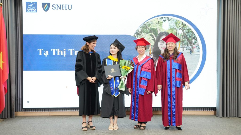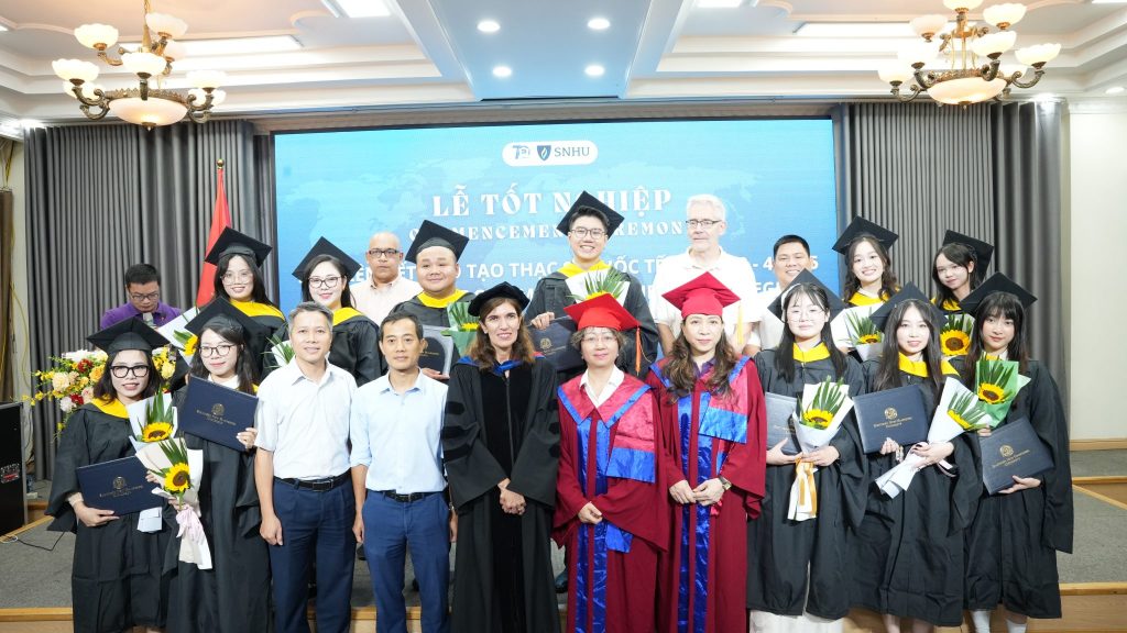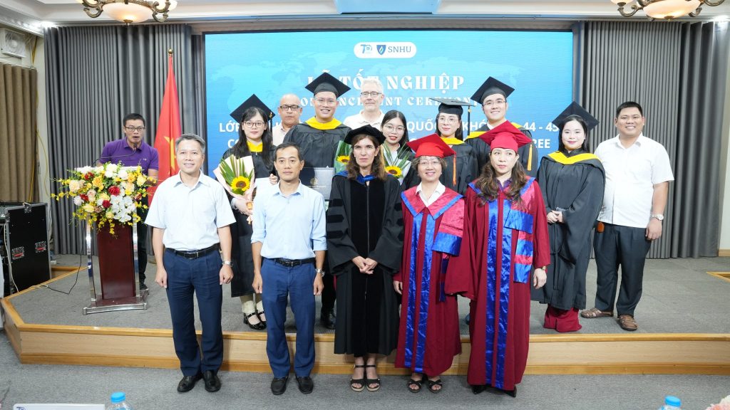 Ngày 29/9/2025, tại Hội trường Sunwah, Trường Đại học Ngoại ngữ – Đại học Quốc gia Hà Nội đã long trọng tổ chức Lễ trao bằng tốt nghiệp chương trình đào tạo thạc sĩ liên kết quốc tế với Trường Đại học Southern New Hampshire (Hoa Kỳ) chuyên ngành “Nghiên cứu giảng dạy tiếng Anh như một ngoại ngữ” cho các học viên khóa 43, 44 và 45. Buổi lễ diễn ra trong không khí trang trọng, đánh dấu cột mốc quan trọng trong hành trình học tập, nghiên cứu và phát triển sự nghiệp của các tân thạc sĩ.