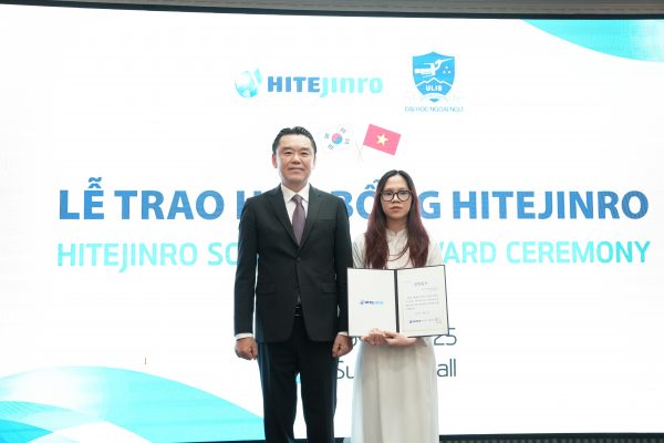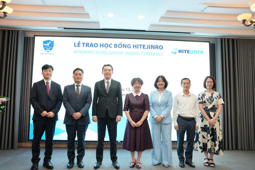 Nhờ sự phát triển của quan hệ ngoại giao Việt – Hàn, hoạt động đào tạo ngôn ngữ và văn hóa Hàn Quốc tại Việt Nam ngày càng nhận được sự quan tâm, hỗ trợ từ các doanh nghiệp Hàn Quốc. Quỹ học bổng HITEJINRO Việt Nam thuộc Tập đoàn HITEJINRO là một minh chứng cho điều đó. Được thành lập từ năm 2016, HITEJINRO đã tổ chức 5 kỳ trao học bổng cho sinh viên Trường Đại học Ngoại ngữ vào các năm 2017, 2019 và từ 2022 đến nay, sau giai đoạn gián đoạn vì đại dịch Covid-19.