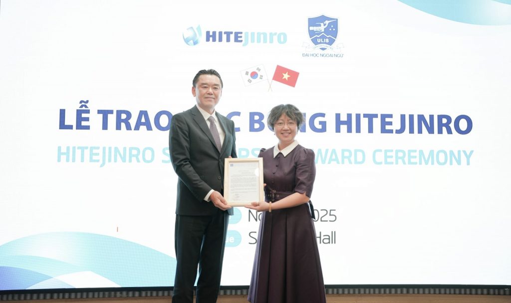 Ngày 13/11/2025, Trường Đại học Ngoại ngữ – Đại học Quốc gia Hà Nội đã tổ chức Lễ trao học bổng HITEJINRO năm 2025 cho 20 sinh viên Khoa NN&VH Hàn Quốc tại Hội trường Sunwah. Đây là một trong những chương trình học bổng uy tín và có giá trị, góp phần khuyến khích, động viên sinh viên Nhà trường trong quá trình học tập và nghiên cứu.