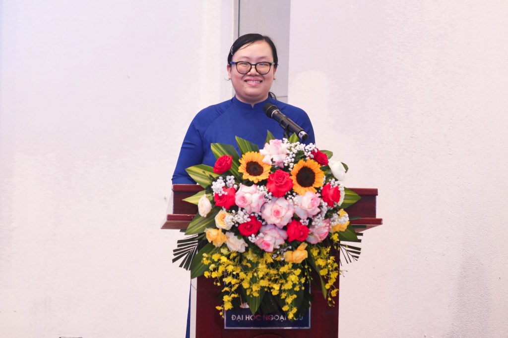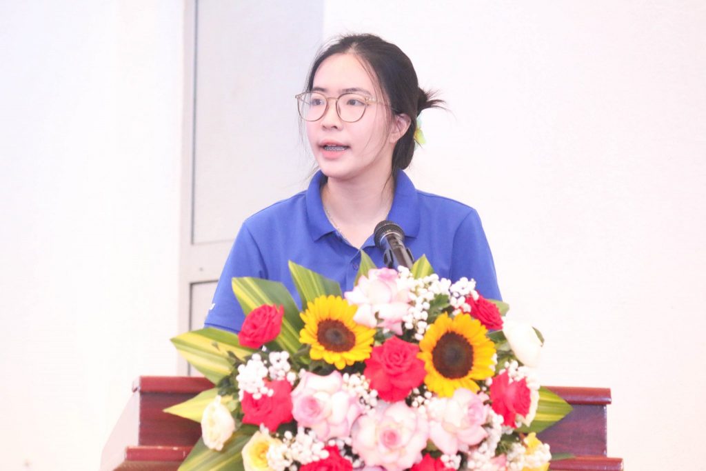 Đại diện nhóm thi Sign By Sign – Quán quân Cuộc thi Sinh viên thế hệ mới 2024, em Nguyễn Bảo Ngọc, sinh viên Khoa NNVH Anh nhấn mạnh: “Các bạn sinh viên Trường Đại học Ngoại ngữ đang có những cơ hội cực kỳ tốt, khi vừa có môi trường học tập trọng điểm, vừa có một môi trường rèn luyện năng động. Chúng ta không chỉ có những sân chơi để thử sức, mà chúng ta luôn có sự đồng hành, ủng hộ, cổ vũ về cả vật lực lẫn tinh thần đến từ nhà trường. Với đặc quyền của sinh viên Trường Đại học Ngoại ngữ, chúng ta hãy biết tận dụng, tranh thủ sự hỗ trợ từ nhà trường không chỉ để phát triển, chứng minh bản thân, mà còn tạo ra những đóng góp tích cực cho cộng đồng, xã hội. Để tinh thần cống hiến của sinh viên luôn được duy trì và lan tỏa, mỗi bạn cần chủ động tận dụng sự hỗ trợ sẵn có, đồng thời nghiêm túc kết hợp giữa nghiên cứu khoa học với ứng dụng thực tiễn, mở rộng đề tài sang nhiều lĩnh vực, không chỉ giới hạn ở ngôn ngữ. Hãy là một người trẻ dám nghĩ, dám làm, dám dấn thân để tạo ra thay đổi to lớn. Về phía nhà trường, chúng em mong tiếp tục nhận được sự tin tưởng, trao quyền và hỗ trợ từ thầy cô, để sinh viên có thêm cơ hội phát triển và tạo ra nhiều giá trị thiết thực hơn cho cộng đồng.“
