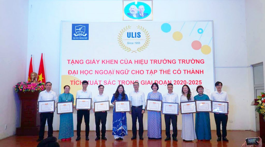 Ngày 9/5/2025, Trường Đại học Ngoại ngữ – Đại học Quốc gia Hà Nội đã tổ chức Hội nghị điển hình tiên tiến giai đoạn 2020-2025, tiến tới Đại hội thi đua yêu nước ĐHQGHN lần thứ VI tại Hội trường Vũ Đình Liên.