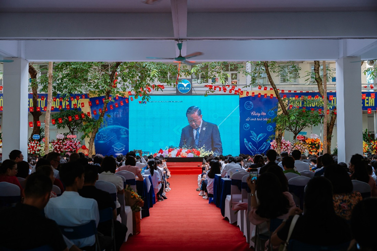 Thầy Nguyễn Phú Chiến – Hiệu trưởng Nhà trườngđọc Diễn văn khai giảng định hướng ba nhiệm vụ trọng tâm cho năm học mới