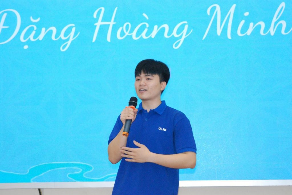 Minh Hiếu: Xin chào mọi người, mình là Đặng Hoàng Minh Hiếu, đến từ Nghệ An. Hiện tại, mình là sinh viên lớp 23C7, Khoa Ngôn ngữ và Văn hóa Trung Quốc, Trường Đại học Ngoại ngữ – Đại học Quốc gia Hà Nội. Mình rất vui khi hôm nay có cơ hội chia sẻ đôi điều cùng các thầy cô, bạn bè và các bạn sinh viên ULIS.