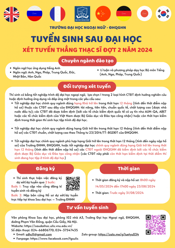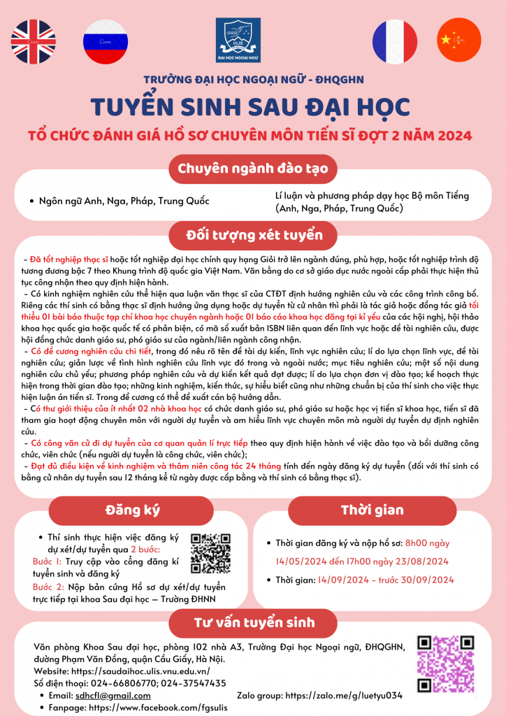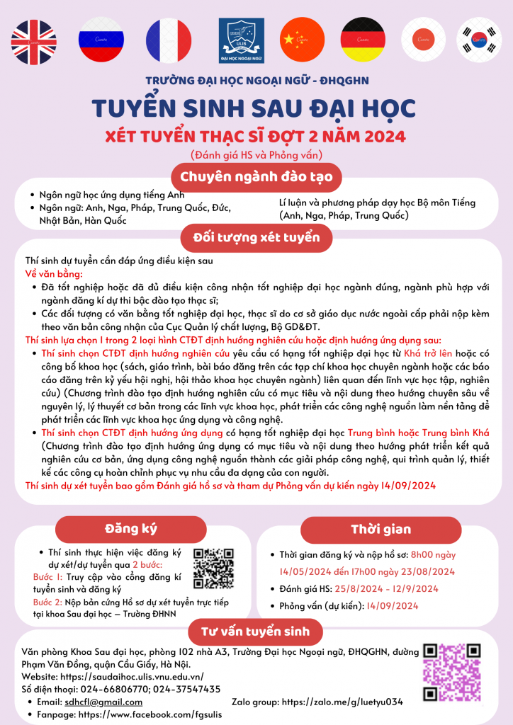 - Thông báo tuyển sinh sau đại học đào tạo trình độ tiến sĩ, thạc sĩ đợt 2 năm 2024: Xem tại đây
